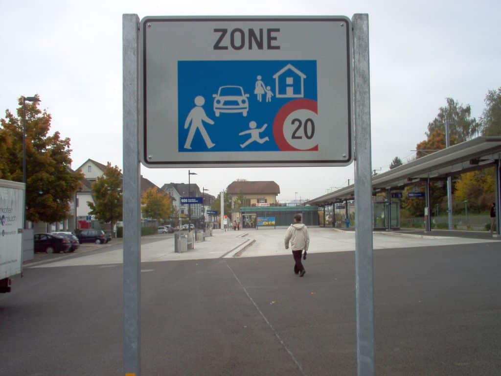 La ristrutturazione della piazza della stazione di Männerdorf (ZH) in una vera e propria piazza urbana ha lo scopo di soddisfare le differenti esigenze e di garantire l’accessibilità a tutti gli utenti. Sia la configurazione che la gestione del traffico sono coerenti. La stazione degli autobus e la Piazza della stazione sono valorizzate da un rivestimento in cemento, mentre i parcheggi e la carreggiata sono asfaltati. Le canalette di scolo dell’acqua sottolineano la separazione tra i due diversi rivestimenti. La creazione della zona d’incontro consente una migliore interconnessione tra tutte le modalità di trasporto (a piedi, in bicicletta, in autobus, in auto, in taxi e con la ferrovia suburbana). Le fermate degli autobus direttamente accanto alla banchina ferroviaria è ottimale perché consente ai viaggiatori di spostarsi a piedi da un mezzo di trasporto all’altro in pochi passi e al riparo dalle intemperie. Inoltre, anche i parcheggi per le biciclette e le automobili sono raggiungibili direttamente e in breve tempo, dato che nella zona d’incontro i pedoni hanno la precedenza.